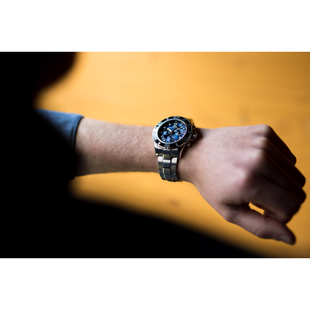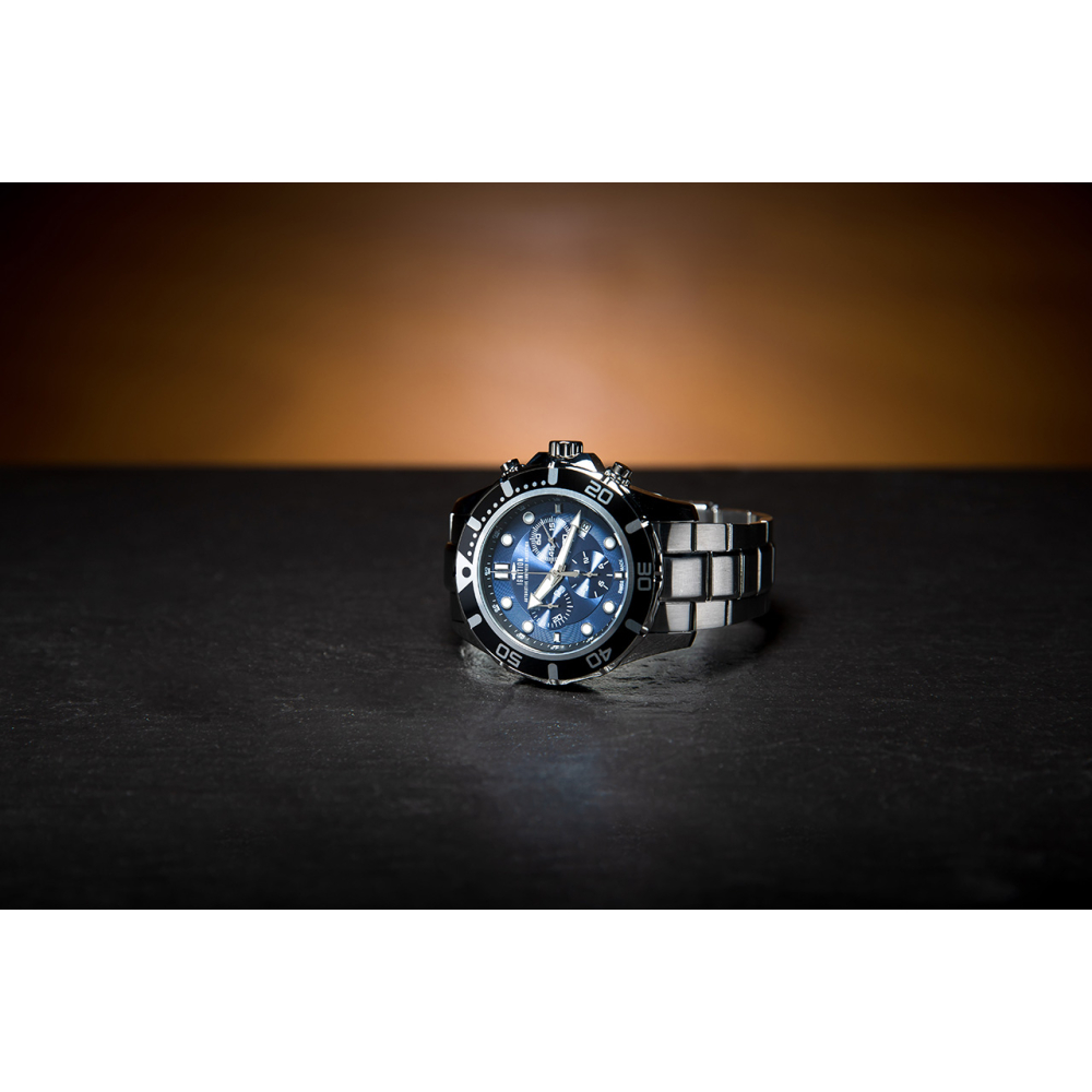 The Ascona Chronograph watch is a sporty chronograph with a steel bracelet. Made from 316L Surgical stainless steel, this is an affordable Swiss Made watch with high quality materials. The blue dial and the black bezel form a beautiful contrast with the steel case and strap.