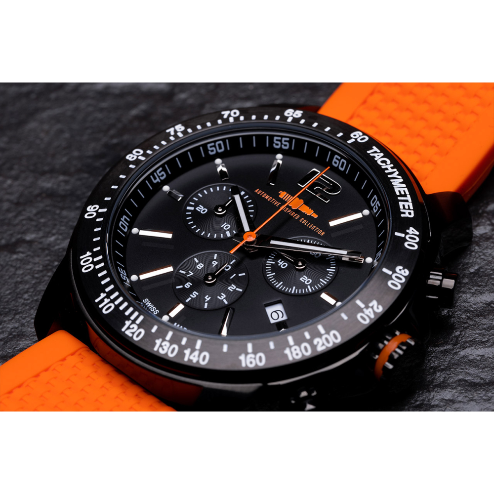 Strap width: 22 mm | Case: Stainless steel | Caseback: Engraved Zandvoort F1 Track | Movement: Swiss Made Quartz Ronda 5040.D | Glass: Mineral glass | Functions: Hours, Minutes, Seconds, Date Indication, Tachymeter & Chronograph | Water-resistent: 10 ATM | Up to 100 meters